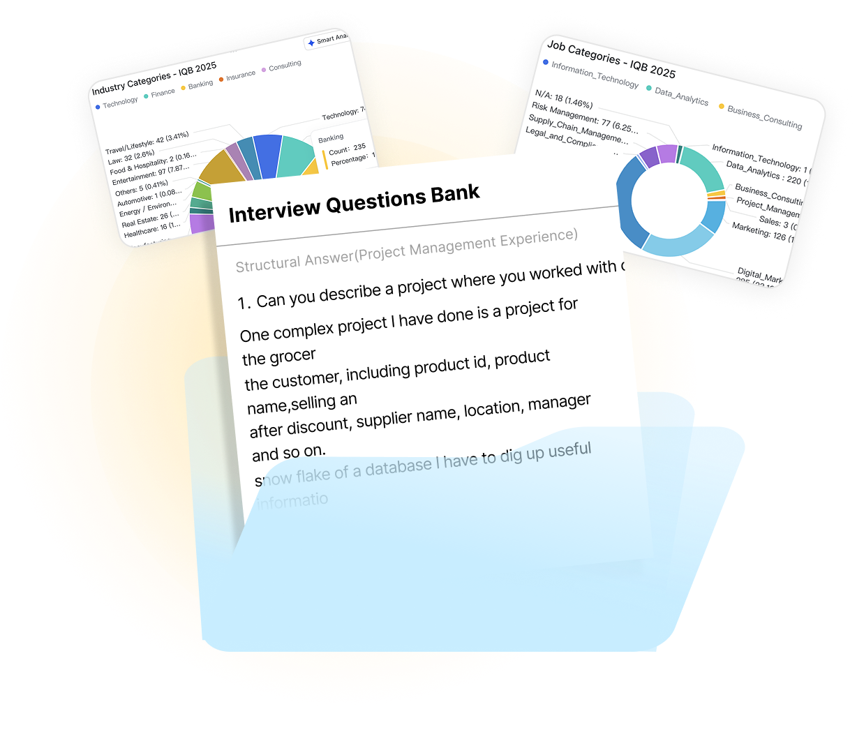 Built on 100,000+real interview questions, 10 years of structured coaching data, and 2,500+ career paths mapped across roles, industries, and job levels — so your preparation is targeted, not generic.
