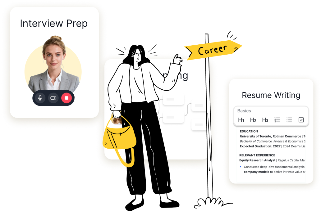 Once you land an interview, practice real-world questions with your lead mentor and career consultant. Walk into the interview prepared, confident, and structured.